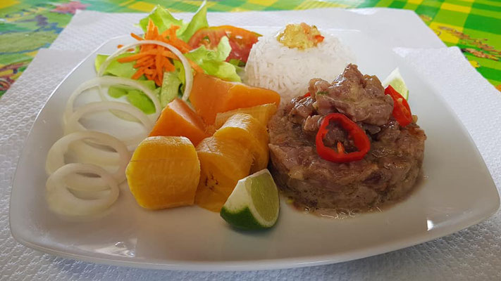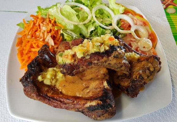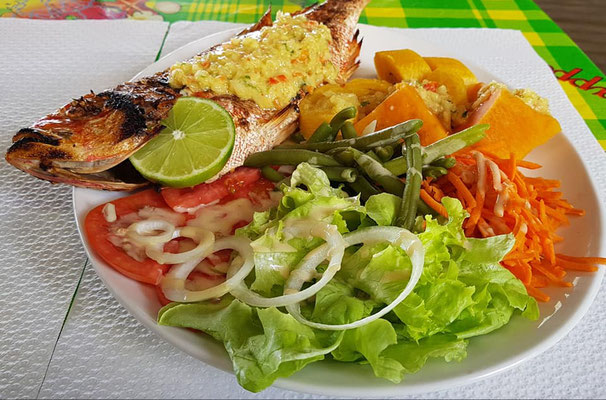 Sur la plage de l'Anse Figuier à Rivière-Pilote Martinique au Restaurant Cascade, La chaleureuse Carole saura vous faire apprécier une délicieuse cuisine créole traditionnelle les pieds dans l'eau. Accras et planteur seront bien entendu au programme!