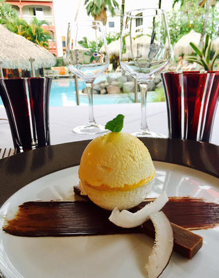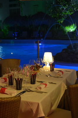 Entièrement ouvert sur le jardin et la piscine, le restaurant le Pitaya à l'Hotel La Pagerie aux Trois-Ilets, vous accueille dans un cadre entièrement rénové. Toute l’équipe du matin est heureuse de vous recevoir pour le service du petit-déjeuner buffet. Pour le dîner, notre Chef vous fera voyager avec ses douces saveurs d’inspiration créole. Pensez à réserver votre table. Notre maître d’hôtel se fera un plaisir de vous recevoir.